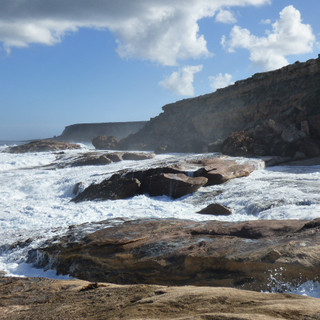 We had planned a few stops on the way and found there was much more to look at than what we originally thought. We had missed seeing the structure of the oyster farm at Coffin Bay the previous day so we were happy to see this when we were leaving. We called into Elliston, which hadn't been in my original plans and the lady at the Visitor Information centre marked out a loop for us to follow with some great views. This turned out to be one of the highlights of our trip for me, we finally saw lots of the dramatic coastline that the Eyre Peninsula is famous for. We stopped off at many points including the Talia Caves and we walked down to the Woolshed Cave which was both spectacular and scary but the whole area was magnificent. From here we drove to Venus Bay just because we wanted to say we had been here considering we live near Venus Bay in Victoria.