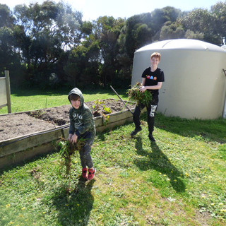 So it begins, a week with our boys. I had a bit of gardening I wanted to do today and both Connor and Ollie seemed happy to help, for 10 minutes, then it was smoko. I think there was some sort of union meeting through smoko because when they returned they had decided it was too Sunday to work any longer and they went out on strike, good help is hard to find. I still had plenty to do so Ollie started riding the bike up and down the hill and Connor brought out his phone to play on in the caravan. After three or four times tearing down the hill Ollie was swooped by one particularly vicious magpie and his off sider. I had to go and save him and get him under cover because it was obvious the magpie wasn't giving up, so he also ended up in the caravan with Connor. When I was finished gardening I called the boys out to help me get everything back to the house and gave them both something to carry. We headed off, Ollie in front, Connor next and then me to watch over them. Connor panicked and told Ollie to run so they both took off and Connor dropped everything out of the bucket he was carrying. We got to the top of the hill but of course half the equipment was down the bottom so I asked 14 year old Connor to go and get them but no way was he prepared to do that, so 7 year old Ollie was the lucky one to go down and pick everything up and bring it up to the house.